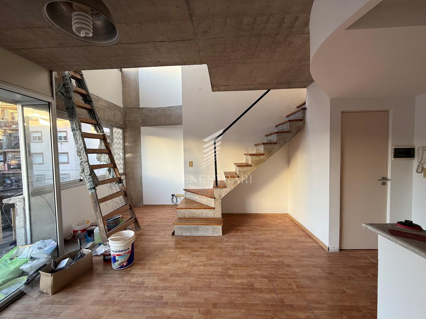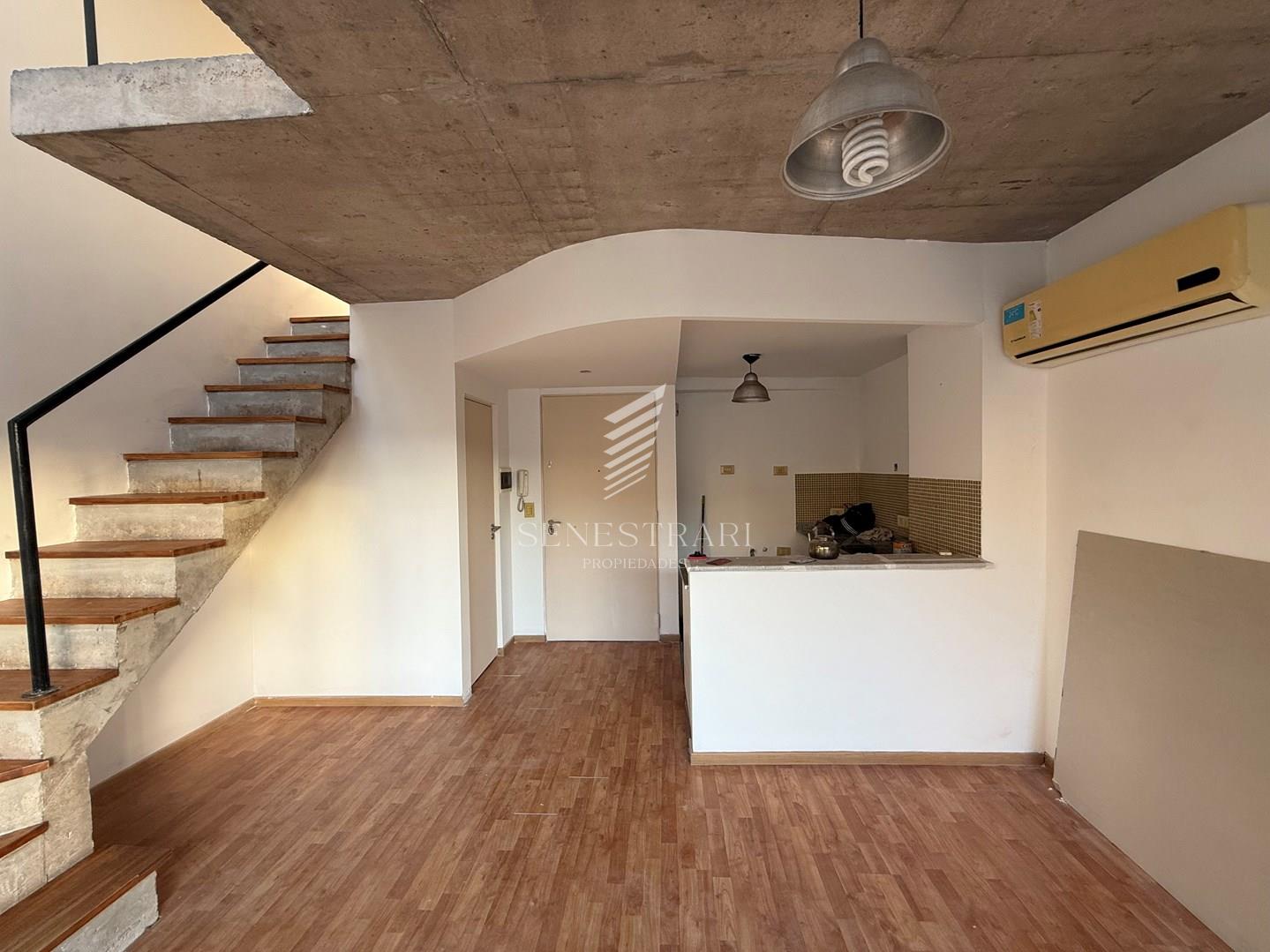SE TRATA DE UN EDIFICIO DE NO MAS DE 10 AÑOS CON MUCHO DISEÑO. INGRESANDO NOS ENCONTRAMOS CON UNA COCINA MUY AMPLIA INTEGRADA AL LIVING QUE TIENE SALIDA A UN AMPLIO BALCÓN. CUENTA CON TOILETE TAMBIEN. SUBIENDO POR LAS ESCALERAS NOS ENCONTRAMOS CON UN DORMITORIO CON PLACARD Y UN BAÑO COMPLETO, ES IMPORTANTE TENER EN CUENTA QUE SE PODRÍA TRANSFORMAR MUY FACILMENTE EN UN 3 AMBIENTES YA QUE TIENE PREPARADO LA VENTANA DE LA DOBLE ALTURA CON APERTURA PARA CUBRIR ESE POTENCIAL PROYECTO.